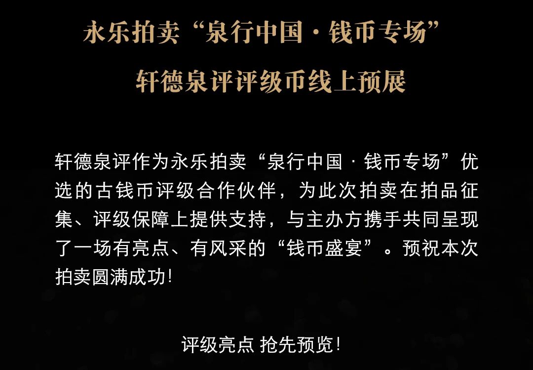 永乐拍卖 《泉行中国·钱币专场》 — 轩德泉评评级亮点专场预览!