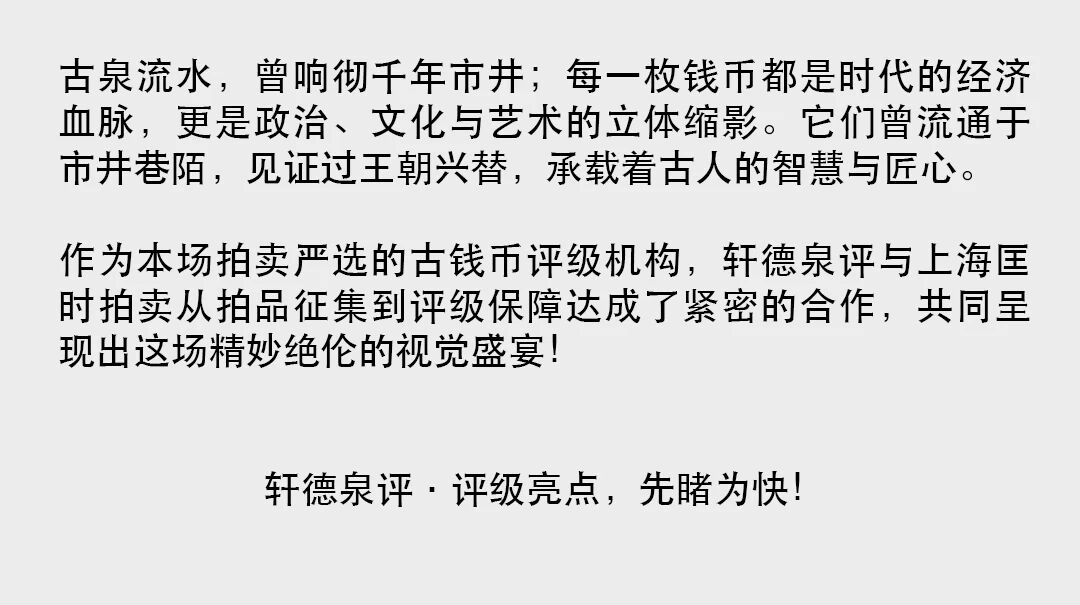 永乐拍卖 《泉行中国·钱币专场》 — 轩德泉评评级亮点专场预览!